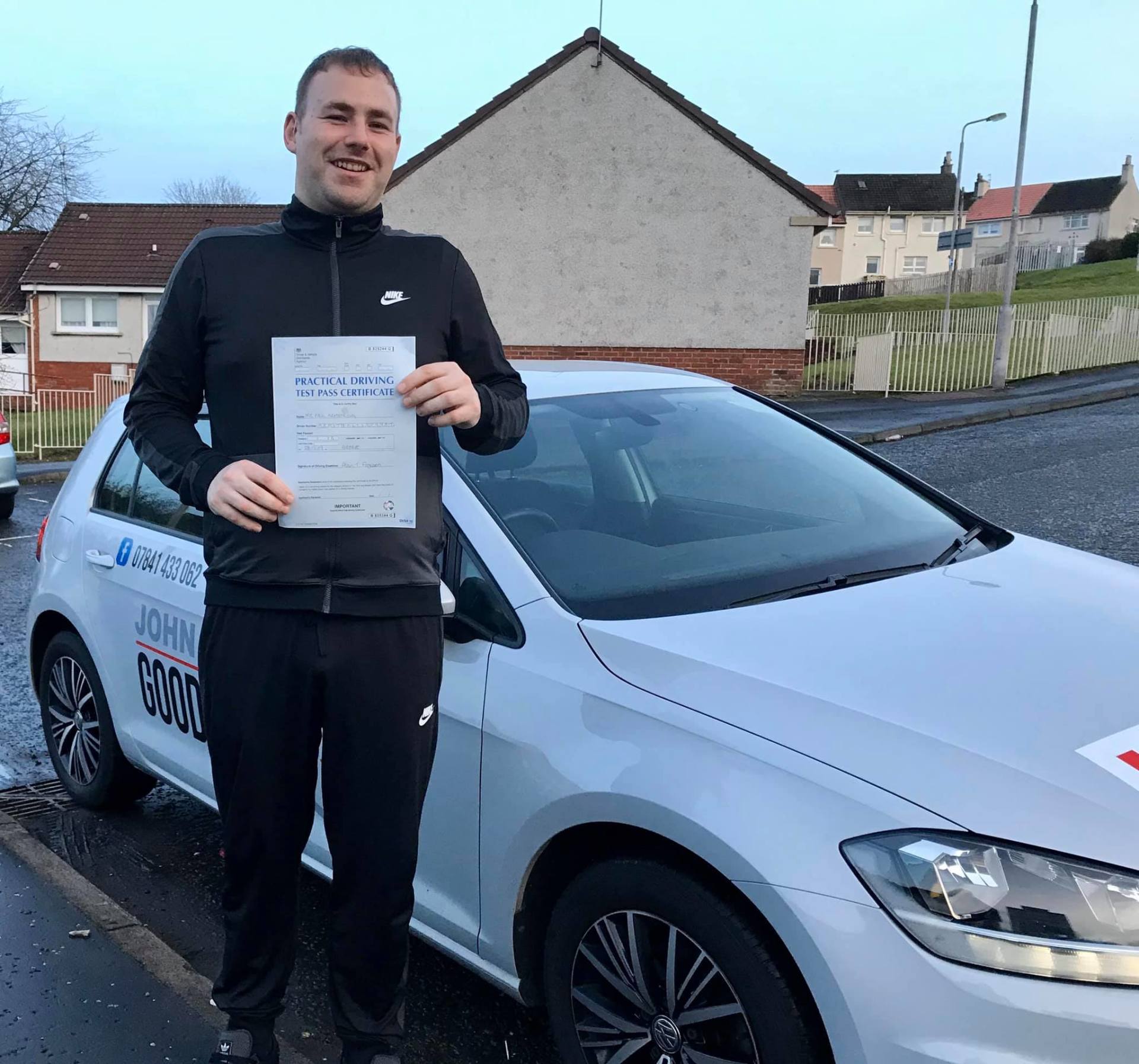 Last test of the year and it’s a first time pass for Paul Armstrong from Coatbridge. Congratulations and well done on a good solid drive . Thanks for choosing me as your instructor, with John Boyce you’re Good to Go π